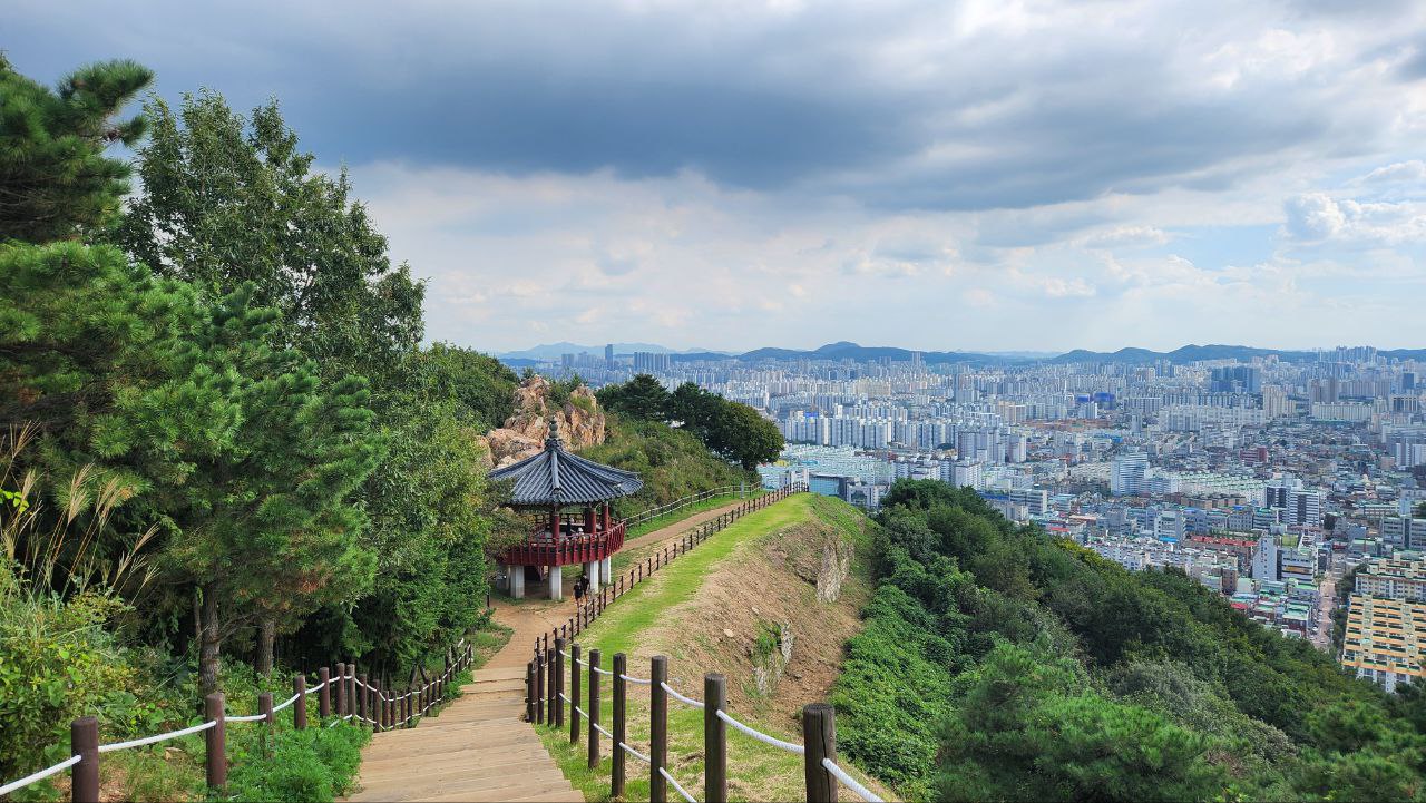 코스 중간중간에는 정자가 있어 쉬어가기 좋고, 아이와 함께 걷기에도 안전하게 설계되어 있습니다. 특히 정상 부근에서 바라보는 인천 시내 전망은 탁 트인 경치로 많은 사람들이 사진을 남기는 명소입니다.