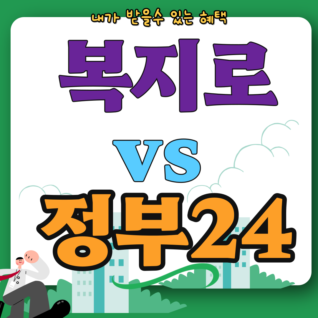 두 사이트 모두 다양한 복지와 행정 민원을 처리할 수 있지만 정부24는 ‘전체 행정서비스’, 복지로는 ‘복지 서비스’에 특화되어 있습니다.