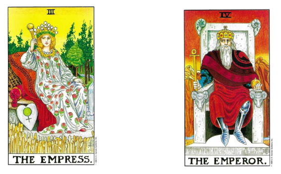 <여황제와 황제는 풍요와 권력, 수확과 질서라는 서로 다른 방식의 성공을 보여주는 대표 카드입니다.>