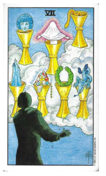컵 7번 카드는 환상과 착각을 의미합니다.